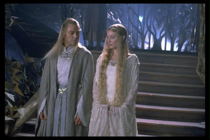Аруэн, Эльронд и Галадриэль — женские и эльфийские фигуры, которые вносят в историю элементы любви, мудрости и древней силы. Лив Тайлер (Аруэн) представляет собой образ любовного выбора и самопожертвования: её решение отказаться от бессмертия ради любви к Арагорну служит эмоциональным центром любовной линии. Хьюго Уивинг (Элронд) и Кейт Бланшетт (Галадриэль) выступают в роли хранителей древней мудрости и силы, которые направляют и испытывают героев. Галадриэль, особенно в своей знаменитой сцене с Фродо и предложением видений, демонстрирует искушение власти и истинный подвиг отказа от неё ради высшего блага.